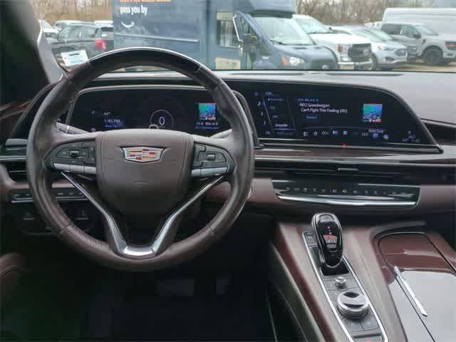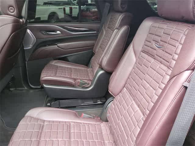 OLED Infotainment Screen, 2-Presets Memory For Driver Seat Adjuster, 3.23 Axle Ratio, 3rd row seats: split-bench, 4-Way Power Driver Lumbar Seat Adjuster, 4-Way Power Front Passenger Lumbar Seat Adjuster, 4-Wheel Disc Brakes, 8-Way Power Driver Seat Adjuster, 8-Way Power Front Passenger Seat Adjuster, A/V remote, ABS brakes, Adaptive Cruise Control, Adaptive suspension, Air Conditioning, Air Ride Adaptive Suspension, AKG Studio Reference 36-Speaker Audio System, Alloy wheels, AM/FM radio: SiriusXM with 360L, Apple CarPlay/Android Auto, Audio memory, Auto High-beam Headlights, Auto tilt-away steering wheel, Auto-dimming door mirrors, Auto-dimming Rear-View mirror, Automatic Seat Belt Tightening, Automatic Stop/Start, Automatic temperature control, Brake assist, Bumpers: body-color, Compass, Delay-off headlights, Door auto-latch, Door Lock & Latch Shields, Driver door bin, Driver vanity mirror, Dual front impact airbags, Dual front side impact airbags, Electronic Limited-Slip Differential, Electronic Stability Control, Emergency communication system: OnStar and Cadillac connected services capable, Enhanced Automatic Emergency Braking, Enhanced Automatic Parking Assist, Floor Console w/Covered Storage, Four wheel independent suspension, Front anti-roll bar, Front Auxiliary 12-volt Power Outlet, Front Bucket Seats, Front Center Armrest w/Storage, Front dual zone A/C, Front reading lights, Full Semi-Aniline Leather Seats, Fully automatic headlights, Garage door transmitter, Genuine wood console insert, Genuine wood dashboard insert, Genuine wood door panel insert, Glass Breakage Sensor, HD Radio, Headphones, Heads-Up Display, Heated & Ventilated Driver & Front Passenger Seats, Heated door mirrors, Heated Driver & Front Passenger Seats, Heated front seats, Heated rear seats, Heated steering wheel, Hitch Guidance w/Hitch View, Illuminated entry, Illuminating Front & Rear Sill Plates, Integrated Trailer Brake Controller, Leather steering wheel, Low tire pressure warning, Magnetic Ride Control Suspension, Memory seat, Navigation System, Night Vision, Not Equipped w/2nd Row Express-Up/Down Windows, Not Equipped w/Steering Column Lock, Not Equipped w/Super Cruise, Occupant sensing airbag, Outside temperature display, Overhead airbag, Overhead console, Panic alarm, Passenger door bin, Passenger vanity mirror, Platinum Interior Trim, Power door mirrors, Power driver seat, Power Liftgate, Power Lumbar Massage Driver Seat, Power Lumbar Massage Front Passenger Seat, Power moonroof, Power Panoramic Tilt-Sliding Sunroof, Power passenger seat, Power steering, Power windows, Preferred Equipment Group 1SG, Radio data system, Radio: AM/FM/SiriusXM w/Navigation, Rain sensing wipers, Rear air conditioning, Rear anti-roll bar, Rear audio controls, Rear Camera Mirror, Rear Camera Mirror Washer, Rear Cross Traffic Alert, Rear reading lights, Rear Seat Entertainment System, Rear window defroster, Rear window wiper, Reconfigurable Full-Color Head-Up Display, Remote keyless entry, Reverse Automatic Braking, Roof rack: rails only, Running Board Assist Steps, Security system, SiriusXM w/360L, Smart Trailer Integration Indicator, Soft Closing Front & Rear Doors, Speed control, Split folding rear seat, Spoiler, Start/Stop System Disable Button, Steering wheel memory, Steering wheel mounted audio controls, Super Cruise, Tachometer, Teen Driver, Telescoping steering wheel, Theft-Deterrent Alarm System, Tilt steering wheel, Touring Package, Traction control, Trailer Side Blind