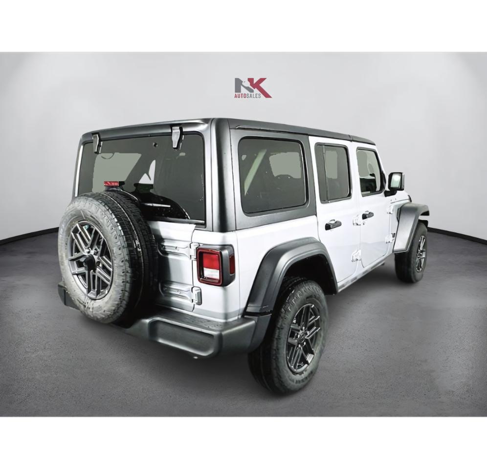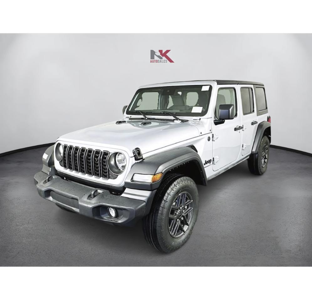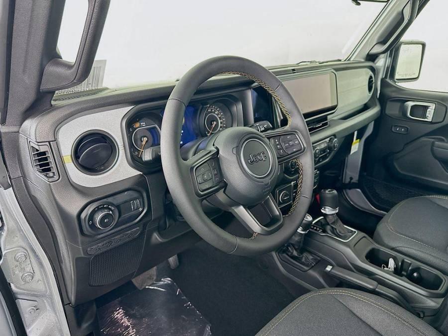 Keyless Start, Navigation System Backup Camera, LED Headlights, Lane Departure Warning, Stability Control Apple CarPlay®/Android Auto®, Bluetooth®, Premium Sound System, USB Port Alloy Wheels, Tow Hitch 2024 Jeep Wrangler Sport S in Silver Zynith Clearcoat, beautifully equipped, Quick Order Package 22S Sport S (Automatic Headlamps, Corning Gorilla Glass, Enhanced Adaptive Cruise Control, Front 1-Touch Down Power Windows, Full Speed Forward Collision Warning Plus, Power Heated Mirrors, Remote Keyless Entry, Security Alarm, Sun Visors w/Illuminated Vanity Mirrors, and Wheels: 17 x 7.5 Gray), 110 MPH Vehicle Max Speed Calibration, 3.45 Overall Top Gear Ratio, 4-Wheel Disc Brakes, 8 Speakers, ABS brakes, Air Conditioning, AM/FM radio, Apple CarPlay/Android Auto, Aux Battery, Black 3-Piece Hard Top, Brake assist, Cloth Low-Back Bucket Seats, Compass, Delay-off headlights, Driver door bin, Driver vanity mirror, Dual front impact airbags, Dual front side impact airbags, Electronic Stability Control, Freedom Panel Storage Bag, Front anti-roll bar, Front Bucket Seats, Front Center Armrest w/Storage, Front fog lights, Front reading lights, Integrated roll-over protection, Jeep Trail Rated Kit, Low tire pressure warning, MOPAR All-Weather Floor Mats, Non-Lock Fuel Cap w/o Discriminator, Normal Duty Suspension, Occupant sensing airbag, Outside temperature display, Overhead airbag, ParkView Rear Back-Up Camera, Passenger door bin, Passenger vanity mirror, Power steering, Radio data system, Radio: Uconnect 5 w/12.3 Display, Rear anti-roll bar, Rear reading lights, Rear Window Defroster, Speed control, Split folding rear seat, Steering wheel mounted audio controls, Stop-Start Dual Battery System, Tachometer, Telescoping steering wheel, Tilt steering wheel, Traction control, Trip computer, Variably intermittent wipers, and Wheels: 17 x 7.5 Black Steel Styled! QUICK ORDER PACKAGE 22S SPORT S -inc: Engine: 2.0L I4 DOHC DI Turbo w/ESS, Transmission: 8-Speed Automatic (850RE), Advanced Brake Assist, Speed Sensitive Power Locks, Automatic Headlamps, Full Speed Forward Collision Warning Plus, Front 1-Touch Down Power Windows, Sport S, Power Heated Mirrors, Enhanced Adaptive Cruise Control, Corning Gorilla Glass, Premium Wrapped Steering Wheel, Security Alarm, Sun Visors w/Illuminated Vanity Mirrors, Remote Keyless Entry, Emergency/Assistance Call, 2-Door Passive Entry, Front Door Locks, Remote Start System, Cluster 7.0 TFT Color Display, Universal Garage Door Opener, Heated Front Seats, Air Conditioning w/Auto Temp Control, Heated Steering Wheel, Air Filtering, MOPAR ALL-WEATHER FLOOR MATS, TRANSMISSION: 8-SPEED AUTOMATIC (850RE) -inc: Adaptive Cruise Control w/Stop, Anti-Lock 4-Wheel Disc Brakes, Dana M200 Rear Axle, Selec-Speed Control, BLACK, CLOTH LOW-BACK BUCKET SEATS, ENGINE: 2.0L I4 DOHC DI TURBO W/ESS, BLACK 3-PIECE HARD TOP -inc: Freedom Panel Storage Bag, Rear Window Defroster, Rear Window Wiper/Washer, No Soft Top, SILVER ZYNITH CLEARCOAT, TIRES: 245/75R17 ALL SEASON (STD), WHEELS: 17 X 7.5 GRAY (STD), JEEP TRAIL RATED KIT