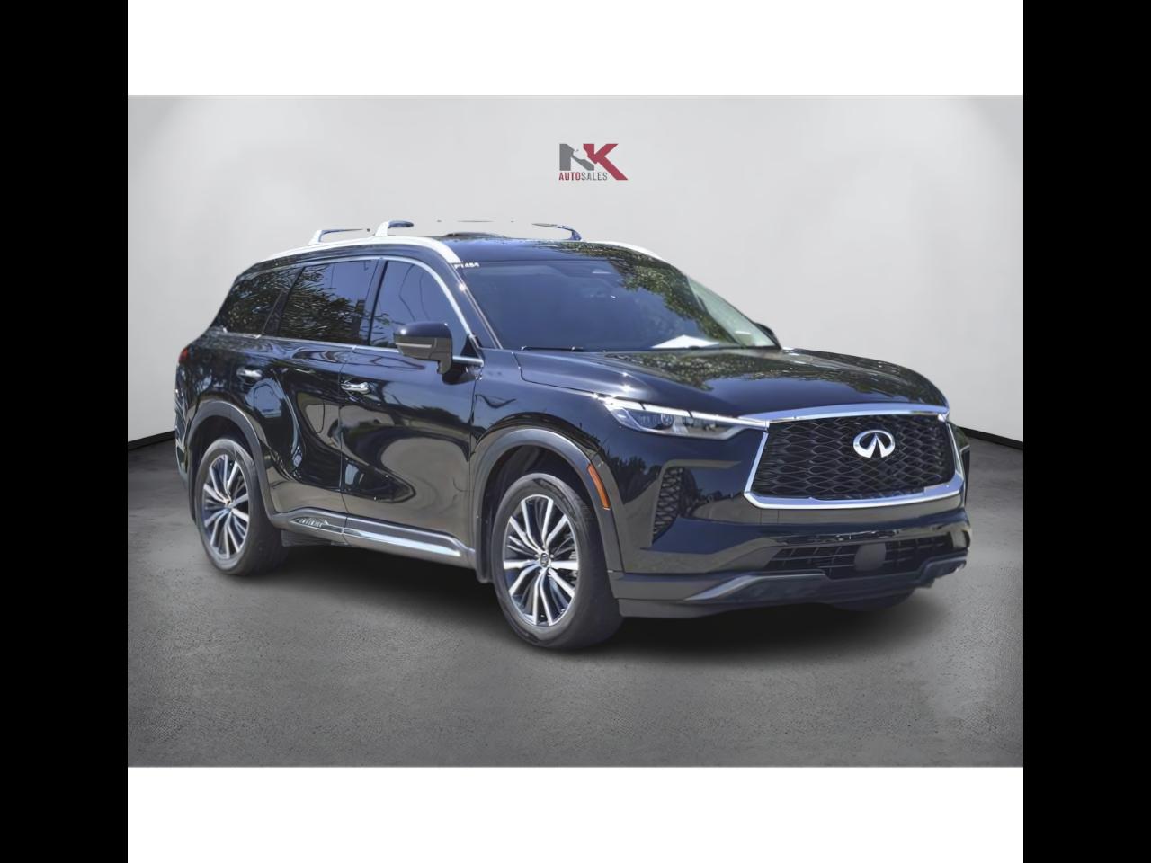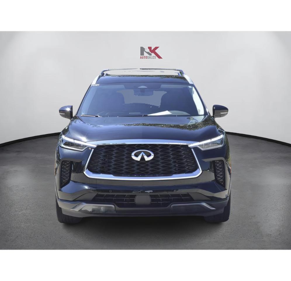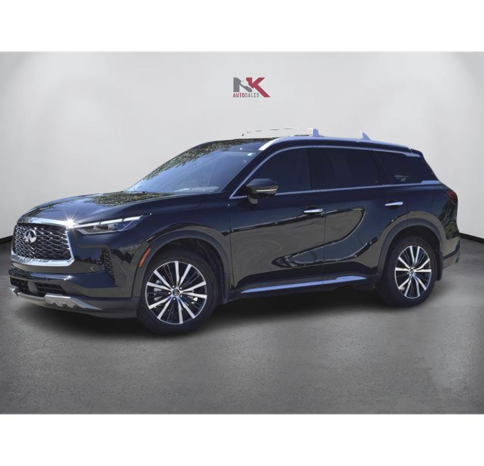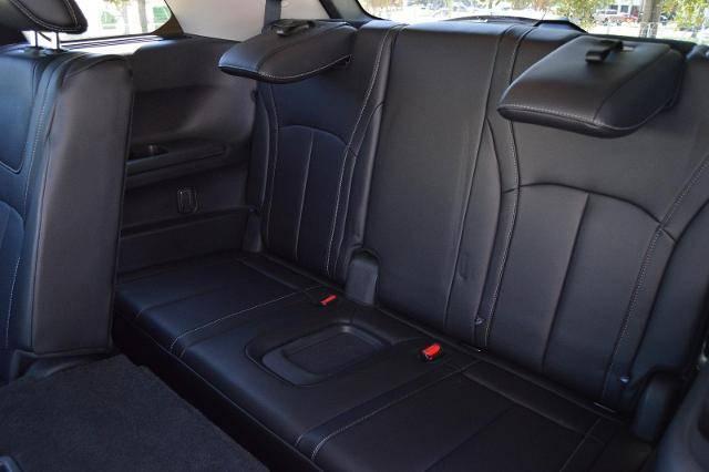 Adaptive Cruise Control, Heated Seats, Heated Steering Wheel, Keyless Start, Navigation System, Power Liftgate, Remote Start Backup Camera, Blind Spot Monitor, Brake Assist, LED Headlights, Lane Departure Warning, Rear Cross Traffic Alert, Stability Control Apple CarPlay®/Android Auto®, Bluetooth®, HomeLink, Premium Sound System, USB Port Sunroof/Moonroof, Alloy Wheels Alloy Wheels, Sunroof/Moonroof, Third Row Seats Mineral Black with Black interior. It is equipped with heated, cooled, and massage seats with driver and passenger memory, a panoramic sunroof, around-view camera, Apple CarPlay & Android Auto, wireless charger, blind spot monitoring, Pro-Pilot assist, navigation, and more. 2 LCD Monitors In The Front,Bose Performance Series 17-Speaker Sound System,Radio w/Seek-Scan, Clock, Speed Compensated Volume Control, Steering Wheel Controls and Radio Data System,Radio: AM/FM Audio System -inc: INFINITI InTouch 12.3" interactive display w/navigation, INFINITI IT controller, wireless Apple CarPlay w/integration, Android Auto, Siri Eyes Free, Google Assistant, INFINITI voice recognition, hands-free text messaging assistant, WiFi hotspot, HD Radio, 6 USB ports, SiriusXM radio w/3-month trial, SiriusXM Travel Link w/3-month trial access to weather, fuel prices, stocks, sports and movie times, SiriusXM Traffic w/3-month trial access to real-time traffic information, INFINITI InTouch services select w/5-year trial access and INFINITI InTouch services premium w/3-year trial access to remote engine start/stop via the app,Turn-By-Turn Navigation Directions,Window Grid And Roof Mount Diversity Antenna,Auto On/Off Projector Beam Led Low/High Beam Daytime Running Auto High-Beam Headlamps w/Delay-Off,Black Grille w/Chrome Surround,Black Power w/Tilt Down Heated Side Mirrors w/Driver Auto Dimming, Power Folding and Turn Signal Indicator,Black Rear Bumper w/Colored Rub Strip/Fascia Accent and Body-Colored Bumper Insert,Body-Colored Door Handles,Body-Colored Front Bumper w/Black Rub Strip/Fascia Accent and Colored Bumper Insert,Chrome Bodyside Insert, Black Bodyside Cladding, Rocker Panel Extensions and Black Wheel Well Trim,Chrome Side Windows Trim and Black Front Windshield Trim,Clearcoat Paint,Compact Spare Tire Stored Underbody w/Crankdown,Deep Tinted Glass,Express Open/Close Sliding And Tilting Glass 1st And 2nd Row Sunroof w/Power Sunshade,Fixed Rear Window w/Fixed Interval Wiper and Defroster,Front Windshield -inc: Sun Visor Strip,Galvanized Steel/Aluminum Panels,Headlights-Automatic Highbeams,LED Brakelights,Lip Spoiler,Perimeter/Approach Lights,Power Liftgate Rear Cargo Access,Roof Rack Rails Only,Speed Sensitive Rain Detecting Variable Intermittent Wipers,Steel Spare Wheel,Tailgate/Rear Door Lock Included w/Power Door Locks,Tires: P255/50R20 All-Season,Wheels: 20" x 8J Luxury Machined Aluminum Alloy -inc: charcoal metallic finish,2 12V DC Power Outlets,2 12V DC Power Outlets and 1 120V AC Power Outlet,60-40 Folding Split-Bench Front Facing Heated Manual Reclining Fold Forward Seatback Rear Seat w/Manual Fore/Aft,Adaptive w/Traffic Stop-Go,Air Filtration,Cargo Area Concealed Storage,Cargo Space Lights,Carpet Floor Trim,Climate Controlled Front Bucket Seats -inc: 8-way power front seats w/4-way power lumbar support